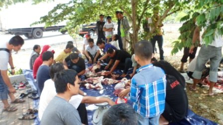 Cutting sacrificial animals carried on 25 September 2015. The sacrificial meat is given to employees who were present, and some are given to the community in which PT. Tsuzuki & Asama Mfg are located, which Kutamekar village where the Suryacipta plant is located and villages Sirnabaya where KIIC plant is located.