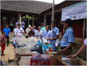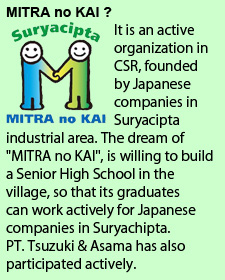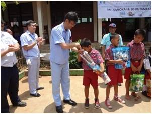 CSR activity this year is a continuation of MITRAnoKAI activity. 5S is a goal of the program MITRAnoKAI. And this time the village held Gintung, ie precisely in SD NEGERI KUTA MEKAR 1, it appears the children were enthusiastic when the group of MITRAnoKAI team headed by Mr. Endro, they were very excited when taught to say hello in Japanese is Ohayougozaimasu (good morning) and konichiwa (good afternoon) As described immediately understand the meaning of their 5S, activities in the classroom is learning cleanse using the cleaning tools.